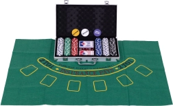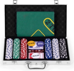 Получавате пълен набор от всички необходими елементи за игра на покер и блекджек, подредени компактно в преносимо куфарче.