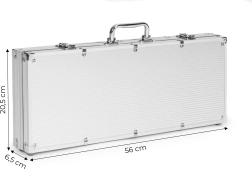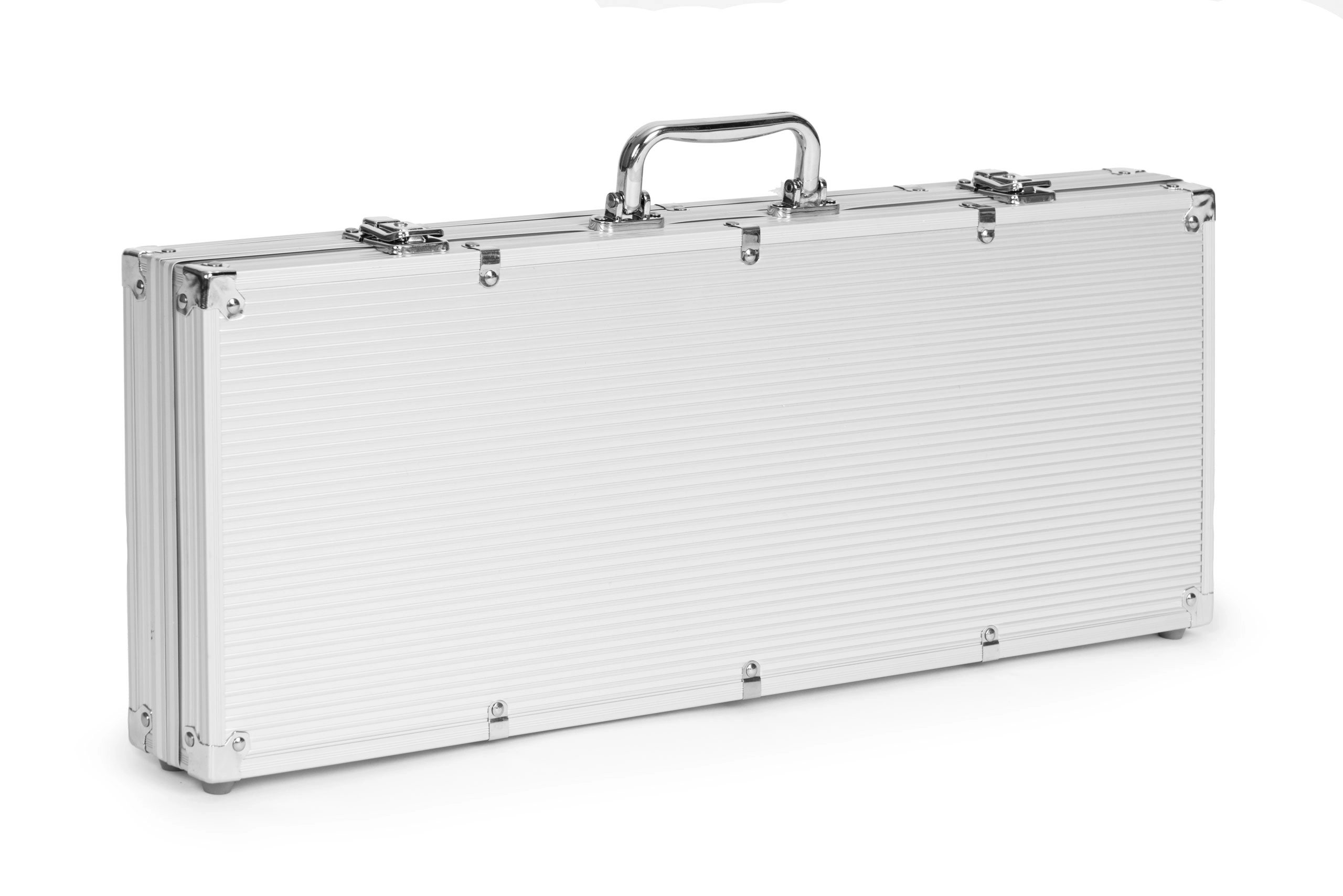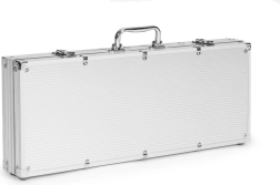 Този пълен комплект включва всичко необходимо за игра на покер и блекджек, опаковано в здрав метален куфар. Лесно се пренася при пътувания или срещи с приятели. Куфарът е заключващ се (2 ключа в комплекта), за да се предотврати случайно отваряне и загуба на компоненти.