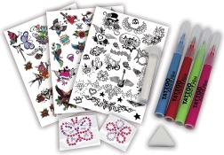 Създайте свои собствени оригинални татуировки или опитайте да пресъздадете любимите си мотиви. Комплектът е лесен за използване и забавен за всякакъв повод.