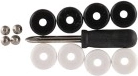 В комплекта има отвертка и крепежни елементи, с които лесно ще стегнете колелцата и ще коригирате настройките за плавно каране.