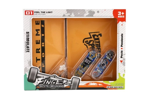 Този комплект за пръстов скейтборд предлага реалистично изживяване по fingerboarding в компактна опаковка. Две издръжливи пластмасови дъски, детайлна рампа и винтови аксесоари позволяват на децата да тренират трикове, да усъвършенстват сръчността си и да се забавляват навсякъде и по всяко време.