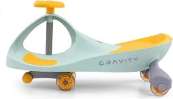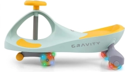Gravity колелото за бутане е изработено от висококачествена пластмаса, която гарантира лекота и издръжливост. Ергономичният дизайн и оформената седалка осигуряват комфорт по време на каране. Стабилната и широка основа заедно с ниския център на тежестта предоставят безопасност при използване. Благодарение на лесния за захващане волан и LED колелата, които светят по време на движение, карането е още по-атрактивно.