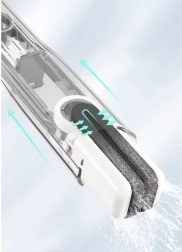 Удобната дръжка гарантира, че ръката ви няма да се умори по време на почистване. Мопът е лек, компактен и лесен за съхранение.