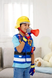 Подарете на децата си усещането да бъдат истински герои с тази лицензирана каска по Пожарникар Сам. Каската е изработена от качествен пластмасов материал, оборудвана с здрави пяна подложки за удобство и безопасност. Вътре ще намерите регулируем микрофон, който придава реализъм на ролята на вашето дете.