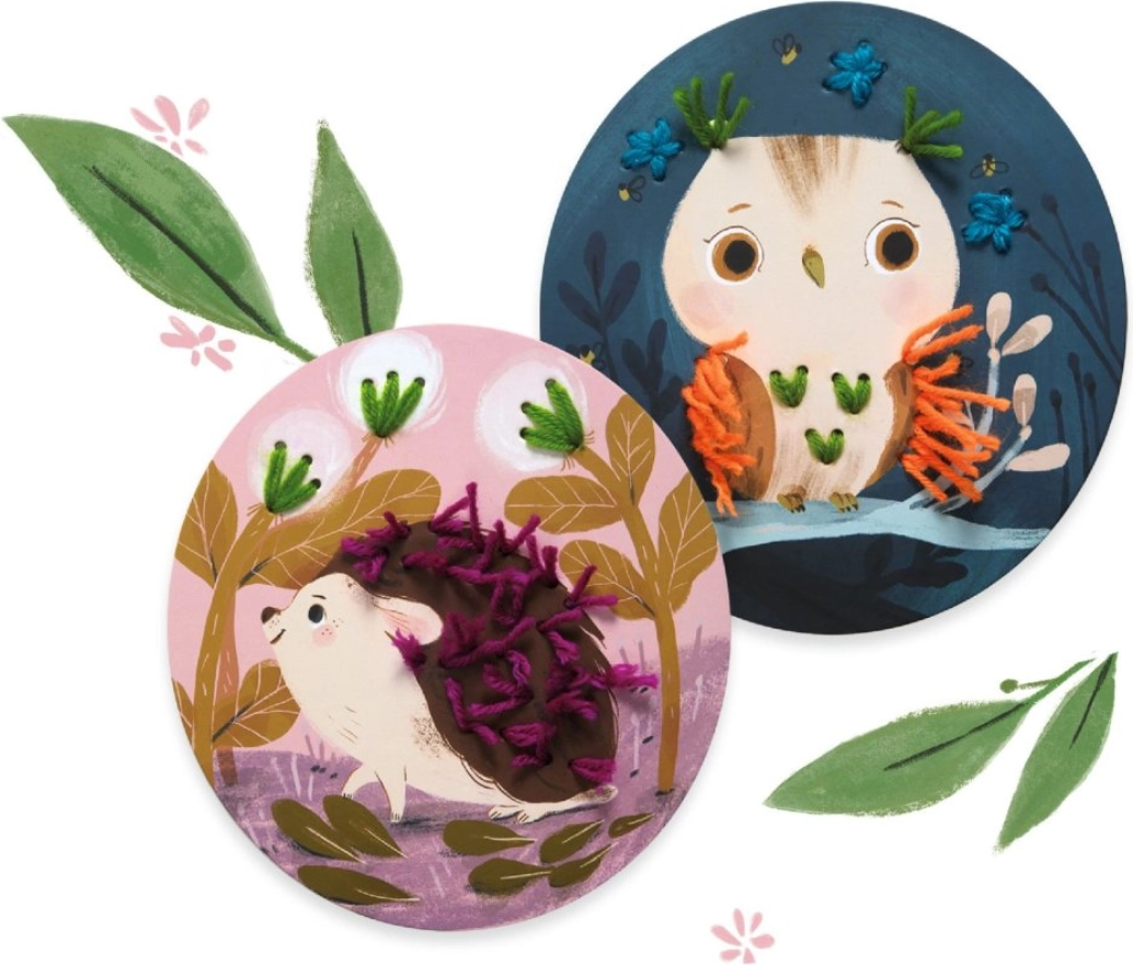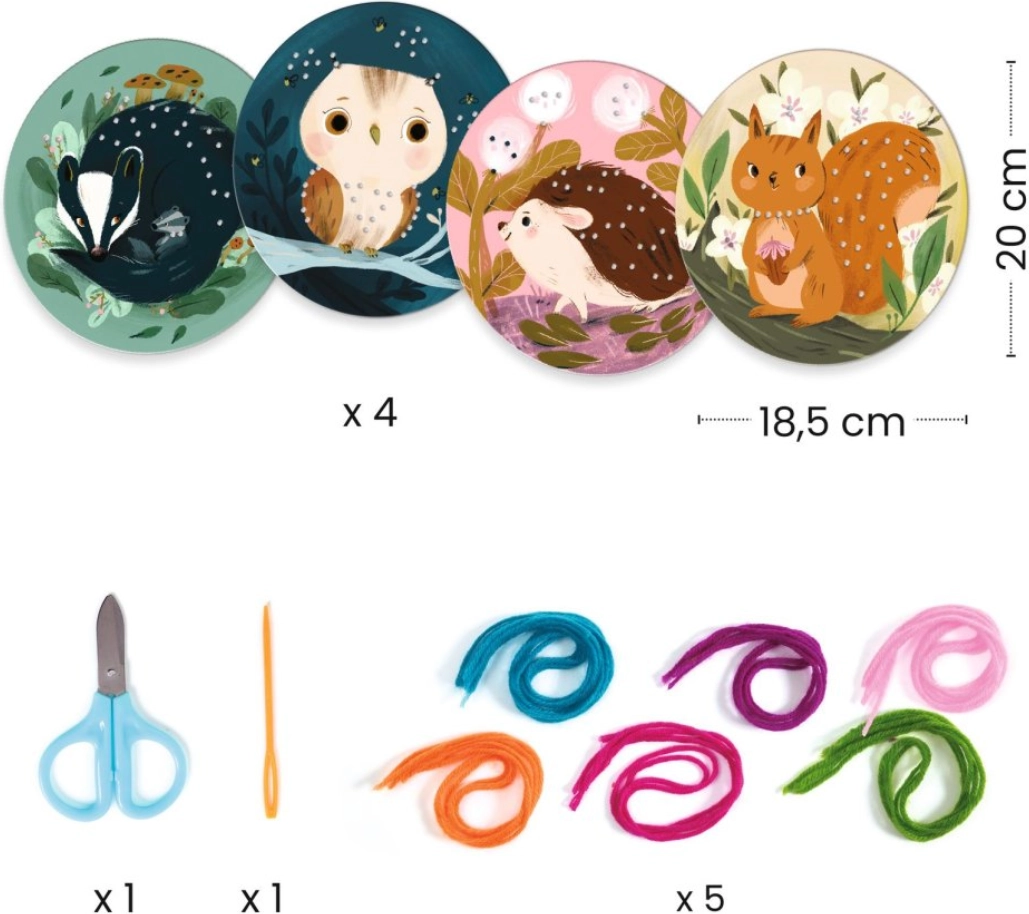Този комплект за бродиране от марката Djeco е идеален избор за първи стъпки в света на ръчните занаяти. Благодарение на предварително перфорираните отвори върху здрави картонени картинки и ясната книжка с инструкции, децата лесно усвояват основите на шиенето и как с помощта на конци да създават ефект на дълбочина.
