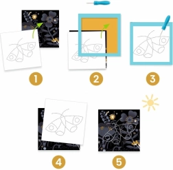 Открийте забавно занимание, вдъхновено от метода Монтесори. Децата безопасно упражняват съсредоточаване, прецизност и сила на натиска, докато създават красиви просветляващи картинки. Здравият пенест и картонен държач държи основите стабилно на място, така че на малките творци им е лесно и уверено да работят.