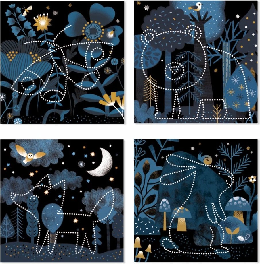 Комплектът съдържа 16 фона, 16 шаблона, перфорираща игла, държач и илюстрирани инструкции. Материали от хартия и картон с FSC сертификат.