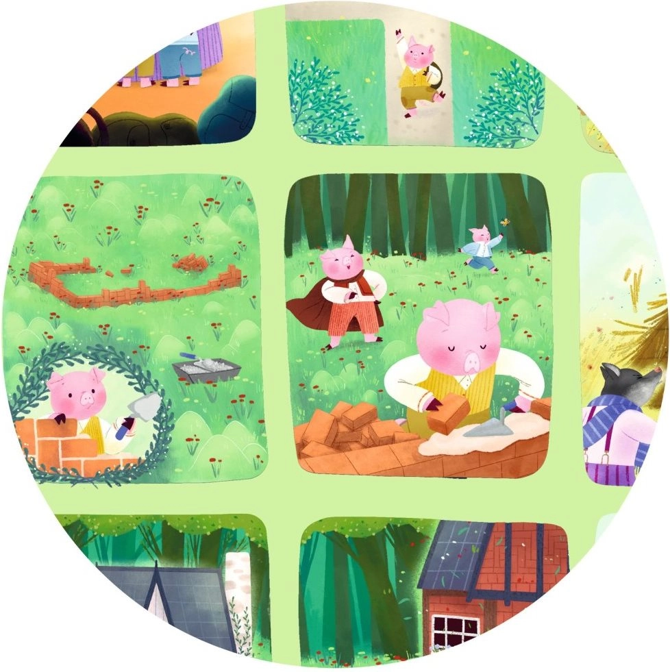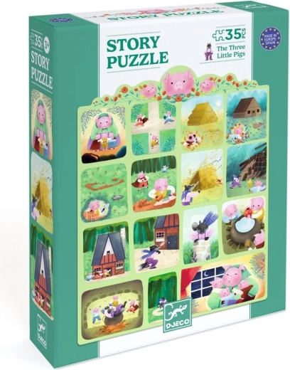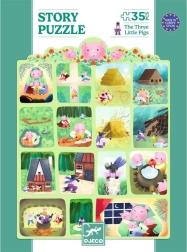 Сглобете пъзела на DJECO и открийте известната история за Трите прасенца, представена като комикс. Идеален за забавление и развитие на уменията.