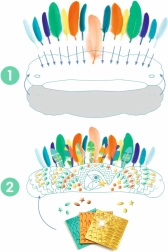 Комплектът съдържа 15 цветни синтетични пера и 7 илюстрирани пера с металически детайли за красиви декорации.