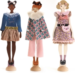 Потопете се в света на модата с креативния комплект от DJECO. Той позволява на младите дизайнерки да създават уникални модни творения с помощта на истински платове и аксесоари. Без необходимост от шиене можете лесно да сглобявате и украсявате облеклата според собствения си вкус.