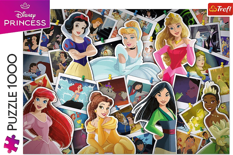 Открийте магията на света на DISNEY, докато подреждате детайлно изработения пъзел с принцеси като Снежанка, Пепеляшка, Ариел и Бел. Благодарение на 1000 здрави части и прецизното изрязване ще се насладите на плавно подреждане и прекрасен финален образ.