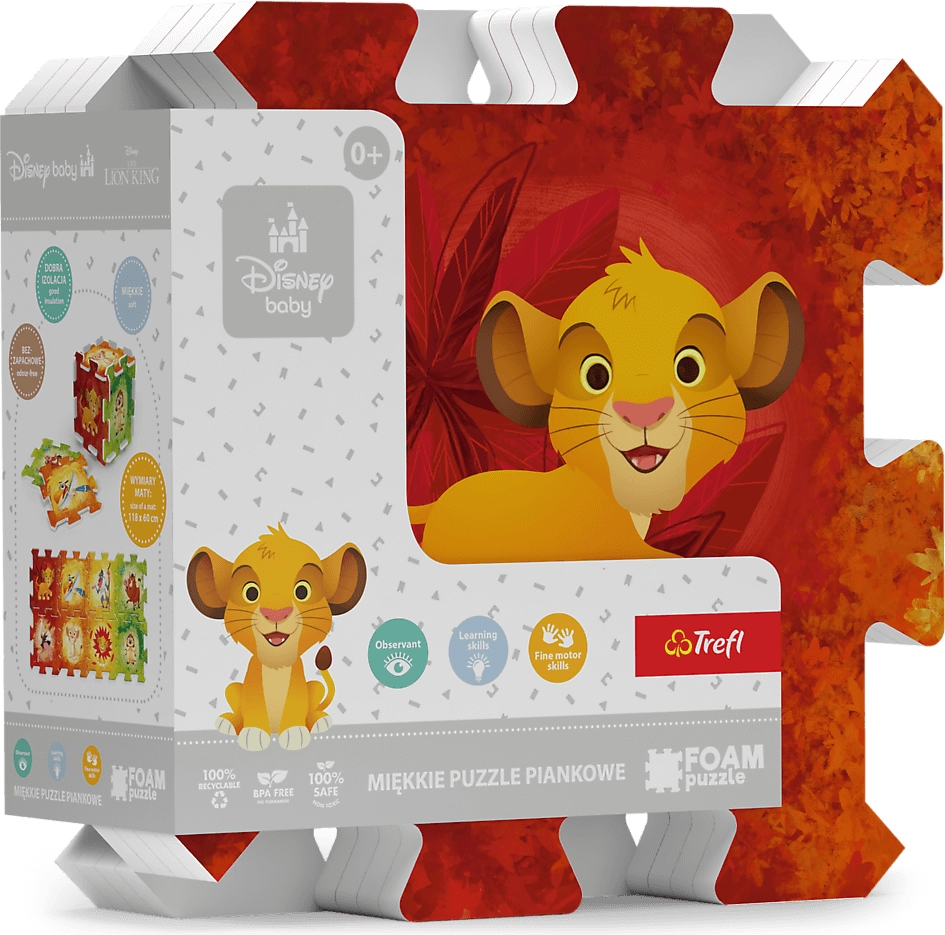 Пеновият пъзел Цар Лъв TREFL е идеален избор за безопасна и креативна игра. Специалният материал, подобен на плътна постелка за къмпинг, осигурява мекота, издръжливост и лесна поддръжка. Децата ще се забавляват не само с подреждане на любимите мотиви от филма Цар Лъв, но и със строене на кубчета или тунели.