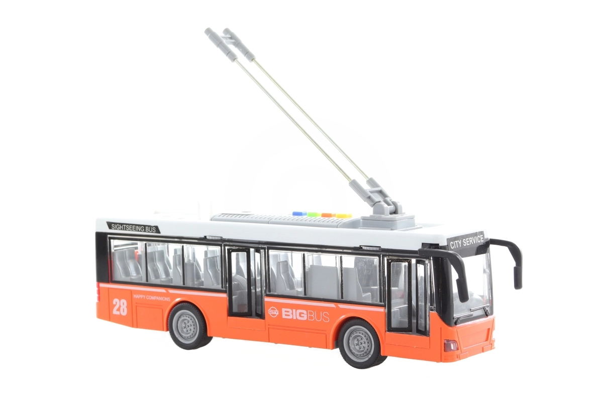 Този тролейбус е оборудван със звукови и светлинни ефекти за реалистична игра.