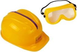 Жълтата каска и прозрачните очила осигуряват симулация на защита за безопасна и реалистична игра.
