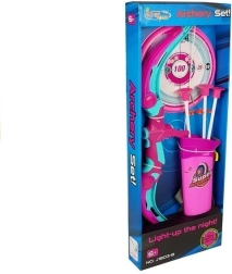 Този детски комплект за стрелба с лък предлага реалистично изживяване в безопасна форма. Цветният розово-тюркоазен лък лежи удобно в детските ръце и при натискане на бутона се осветява – осигурява атрактивни светлинни ефекти дори при вечерни игри. Стрелите са оборудвани с вендузи, които лесно се закрепват върху гладки повърхности и не оставят следи.