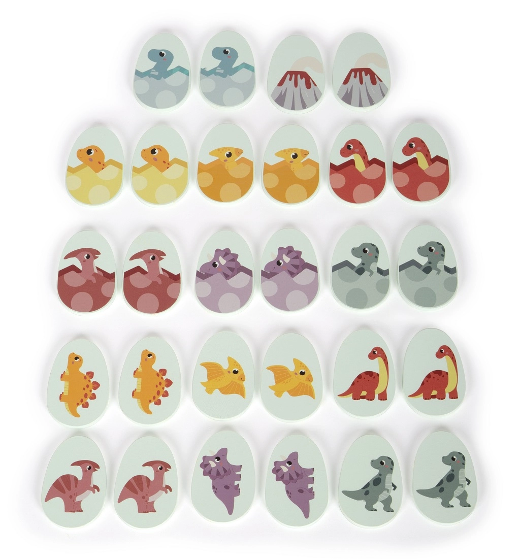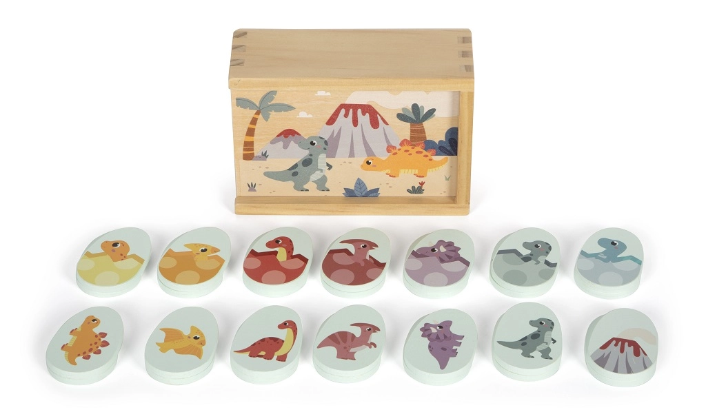 Потопете се в приключенския свят на праисторическата ера с Пексесо Дино. Тази семейна настолна игра предлага 14 двойки изображения на динозаври във форма на яйца, с което по забавен начин тренирате концентрацията и паметта. С компактния си размер и практична кутия с плъзгащ се капак е идеална не само за игра у дома, но и за път.