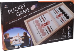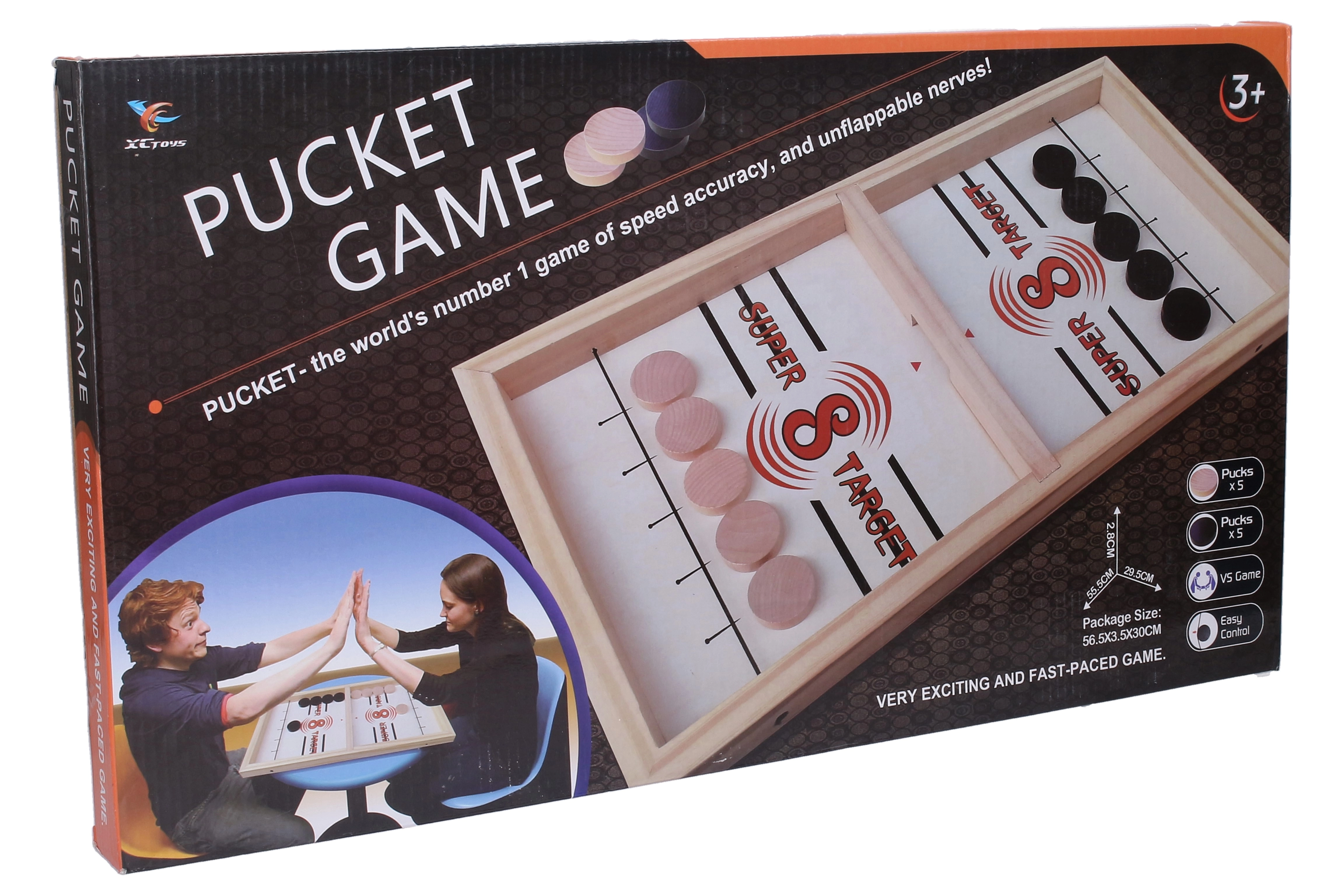 Представяме ви дървен настолен хокей, перфектен за всяка семейна вечер или приятелски срещи. Тази игра е проектирана така, че да могат да участват както деца от 3 години, така и възрастни. Нужно е само да вземете пет шайби, да опънете ластичето и да се опитате да изпратите възможно най-много от тях в полето на противника.