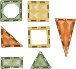 Комплектът съдържа 90 цветни кубчета с различни форми, които насърчават детското въображение и приканват към креативно творене. Свързването на кубчетата развива фината моторика и координацията око-ръка на детето.