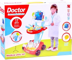 Открийте забавната детска лекарска количка със светлинни и звукови ефекти, която насърчава креативна игра на доктор, обучение по първа помощ и развитие на емпатия. Богатото оборудване включва стетоскоп, термометър, отоскоп, апарат за кръвно, спринцовка и още аксесоари – всичко в безопасно пластмасово изпълнение.