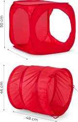 Кубичната шатра предлага на децата място за скриване и забавление с часове. Всяка шатра има 3 отвора за свързване на тунелите и осигурява добра вентилация на цялата конструкция. Благодарение на саморазгъващата се структура шатрите се разгръщат автоматично за 2 секунди. Вече не са необходими продължителни сглобявания на конструктивни елементи.