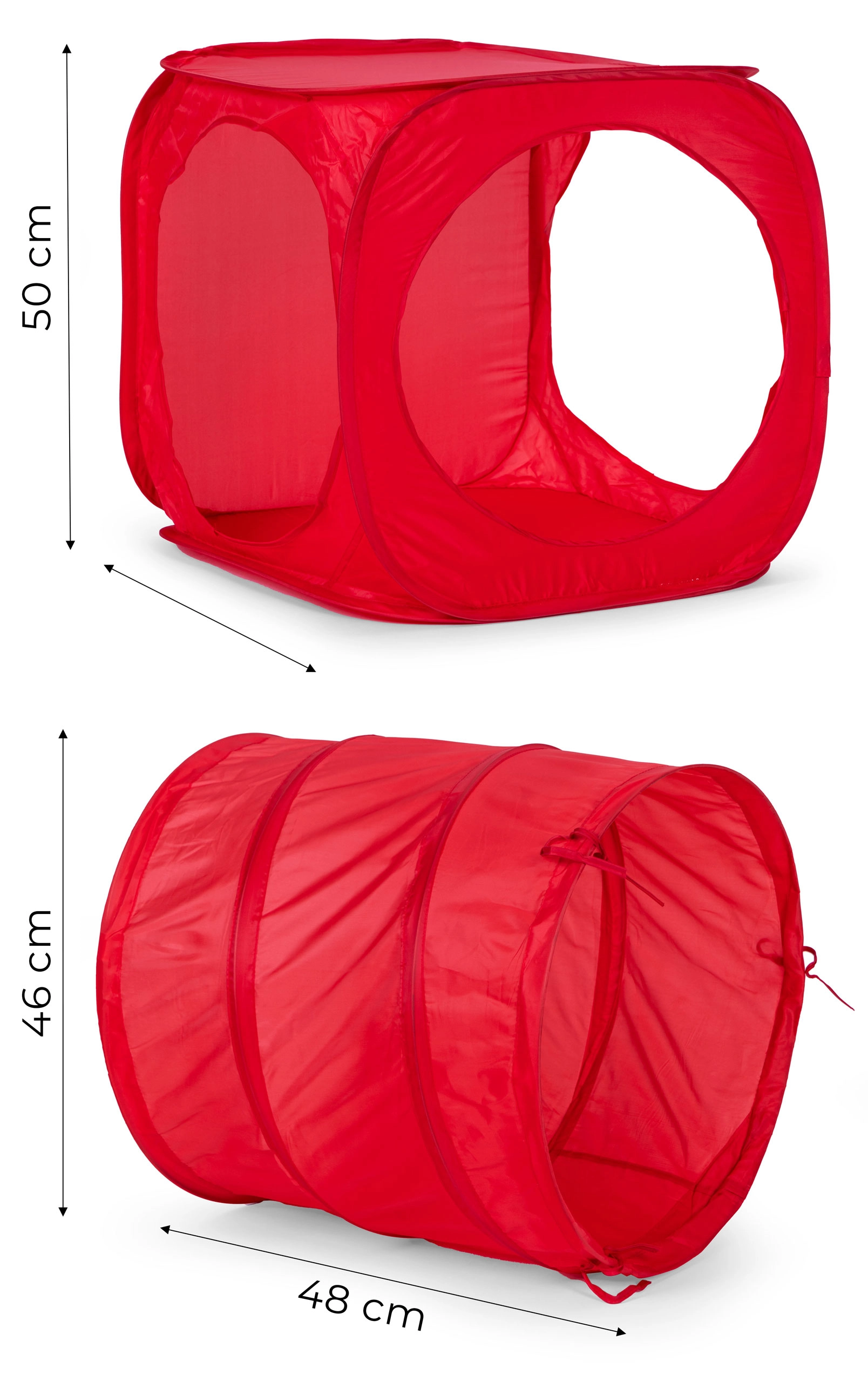 Детският комплект за игра от IPLAY съдържа 3 кубични шатри и 3 тунела, които могат да се комбинират в една голяма игрална зона. Благодарение на универсалната конструкция можете да променяте конфигурацията според нуждите – идеален както за употреба у дома, така и в градината. Комплектът предоставя активна забава за няколко деца едновременно – идеален за рождени дни, градински събирания или излети.