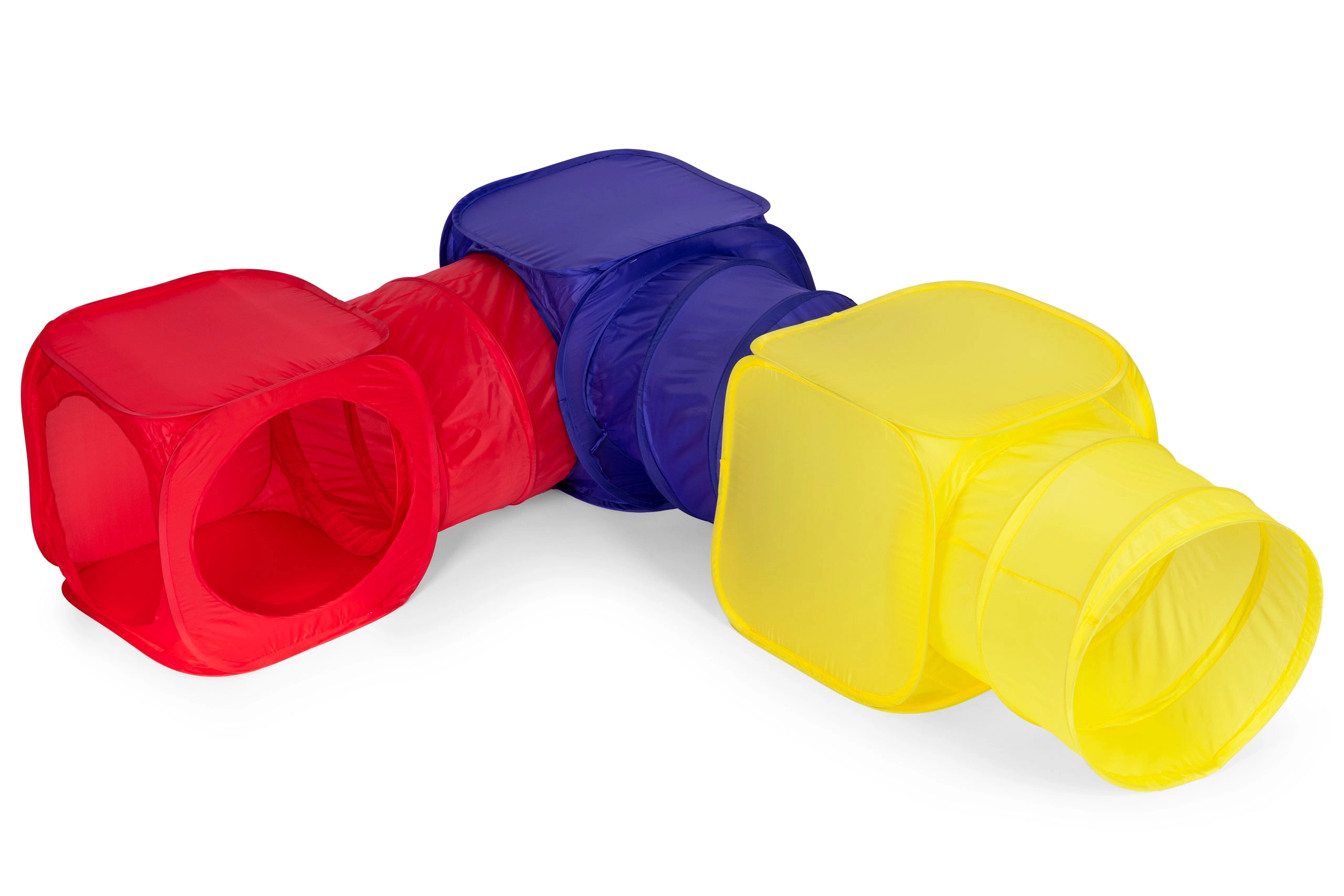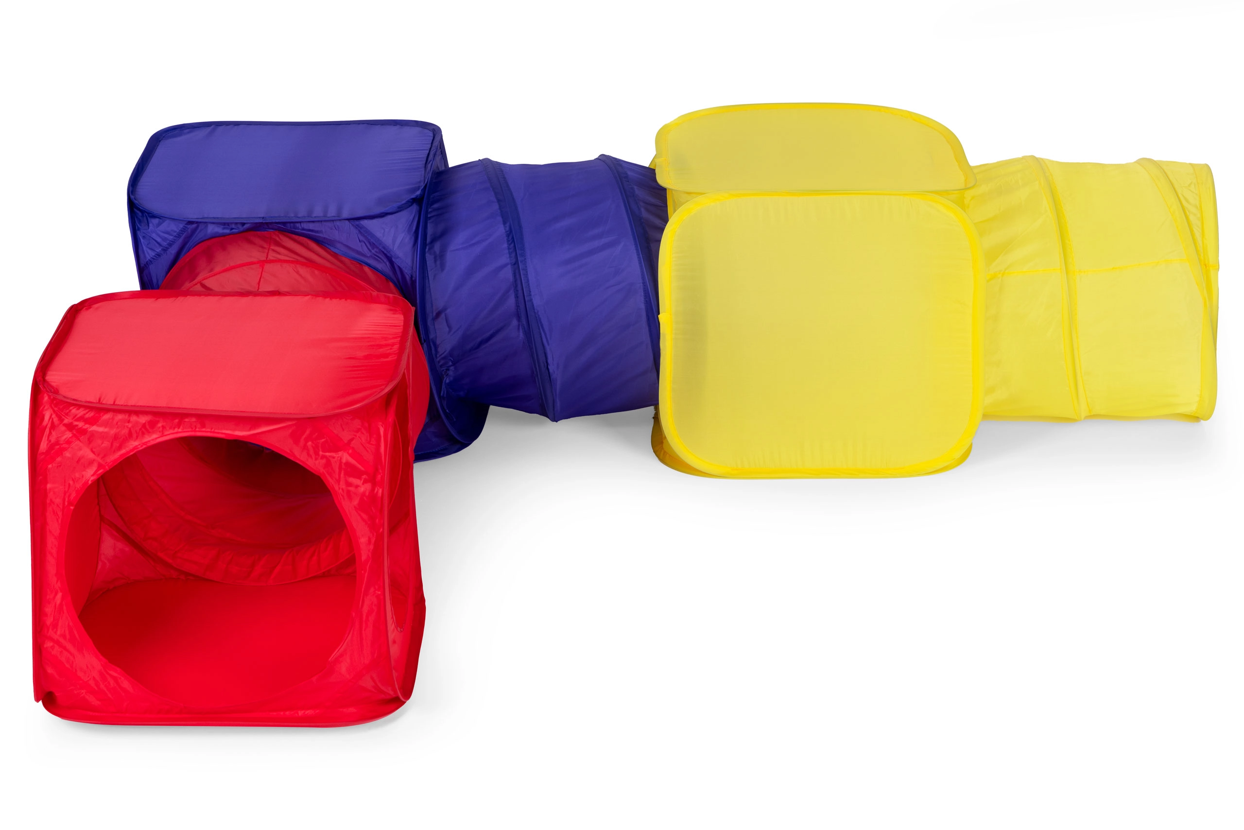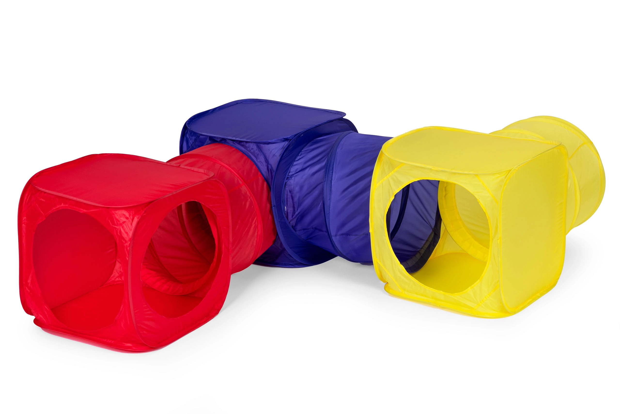 Този комплект за деца включва 3 кубични шатри и 3 тунела, които могат да се комбинират и разполагат във всякаква конфигурация. Лесният монтаж и лекият дизайн осигуряват безкрайно забавление.