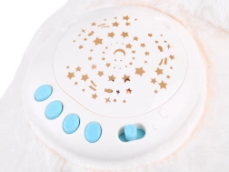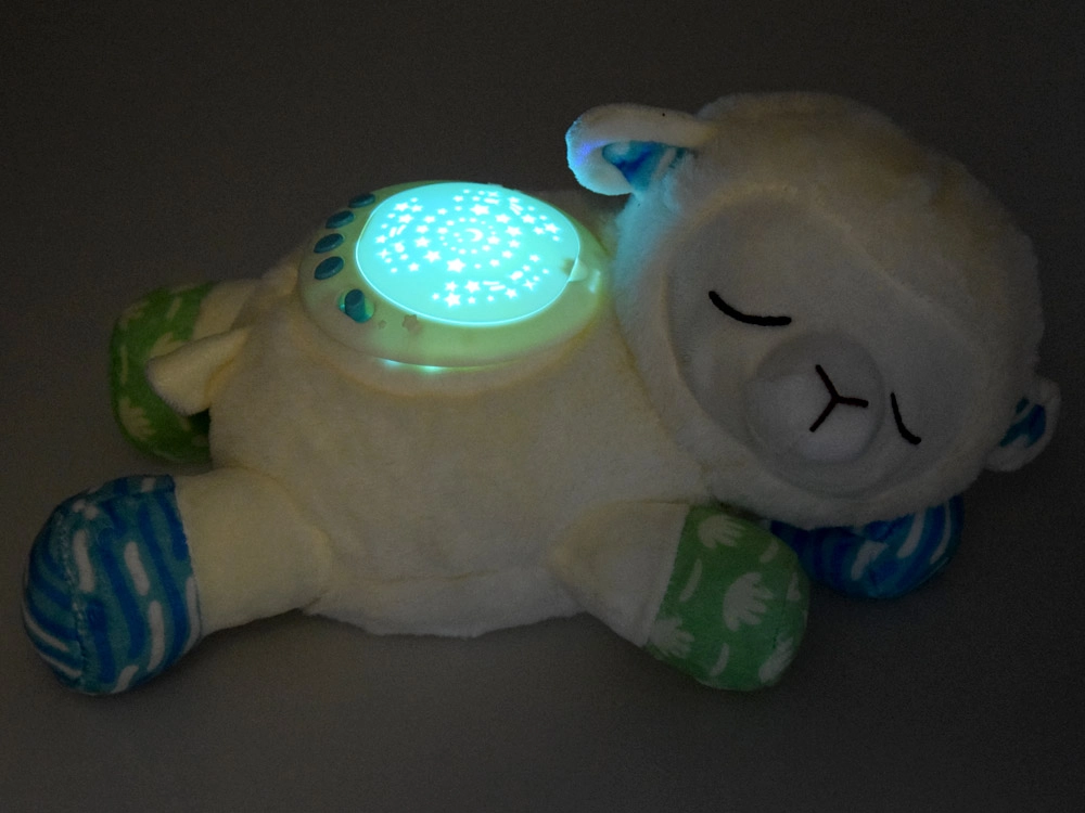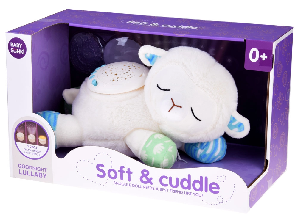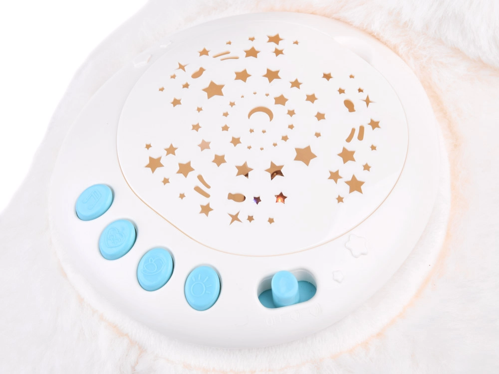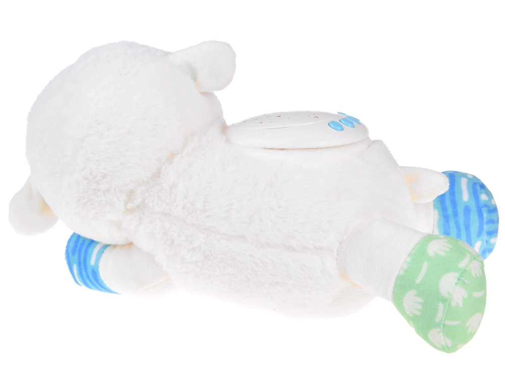 Плюшеното агънце е ушито от мек, гальовен материал и е идеално за бебета от първите дни. Благодарение на везаните детайли е безопасно и за най-малките. Вграденият проектор и аудио модул помагат на децата да заспят и създават усещане за сигурност, а за по-големите подпомагат самостоятелното заспиване.