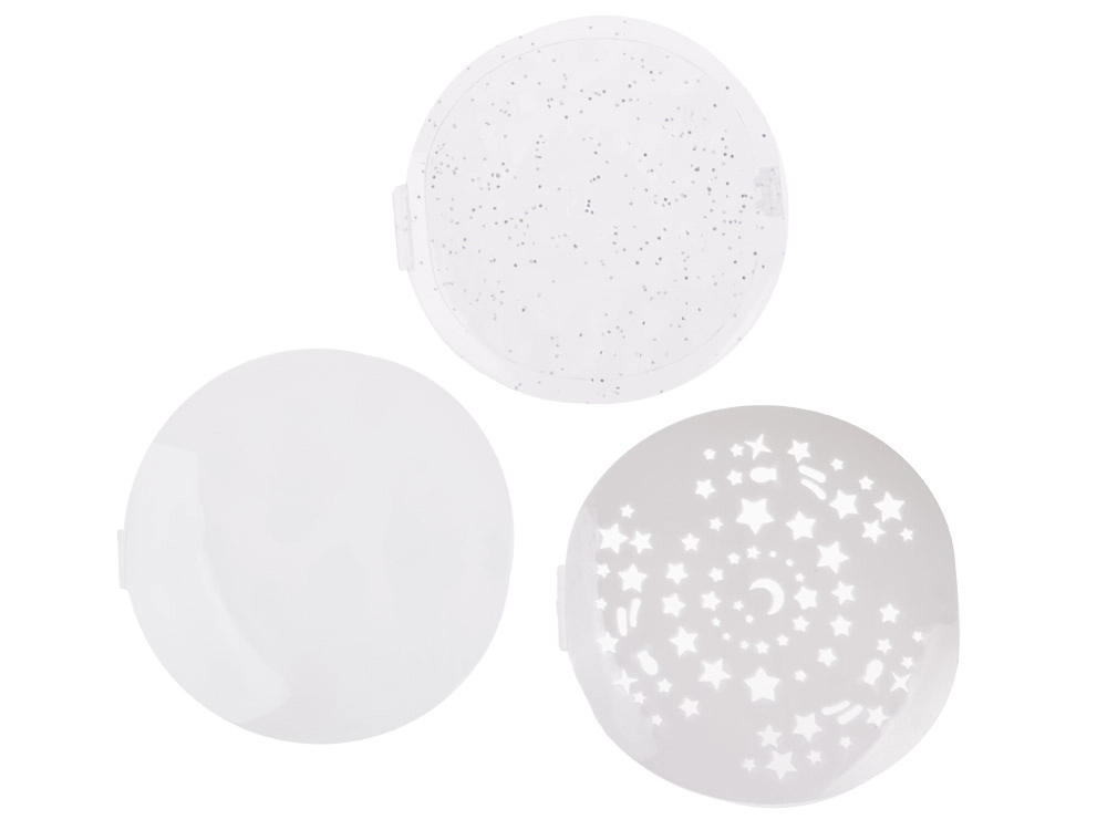 Регулируема нощна лампа с плавни преходи на цветовете и три сменяеми диска създава уютна атмосфера за лесно заспиване.