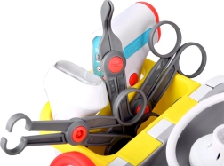 В комплекта са включени детски медицински принадлежности и стерилизатор за инструменти за реалистична и безопасна игра.