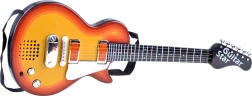 Тази стилна електрическа китара в енергичен оранжево-черен цвят е чудесен избор за деца, които обичат музиката. Металните струни реагират на допир, а мигащите оранжеви светлини под тях създават атрактивно шоу при всяко свирене.