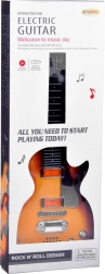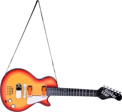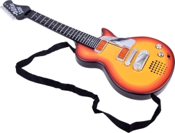 В комплекта има презрамка за удобно носене и свирене в изправено положение. Китарата е изработена от издръжлива пластмаса, захранва се с 3× AA (не са включени) и отлично подпомага ритъма, моториката и увереността на малките музиканти.