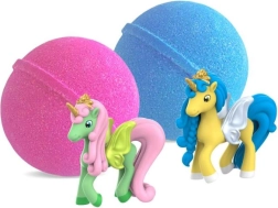 Във всяка бомбичка е скрита изненада под формата на колекционерска фигурка еднорог. Различните цветови варианти насърчават играта и въображението – децата могат да събират и разменят фигурките.