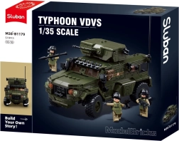 Sluban Typhoon е качествен комплект за сглобяване за всички почитатели на военната техника и екшън игрите. Моделът в мащаб 1:35 се отличава с реалистични детайли като въртяща се кула, отварящи се части и автентични аксесоари за фигурките. Комплектът е изработен от издръжлива и безопасна ABS пластмаса и включва ясен наръчник.
