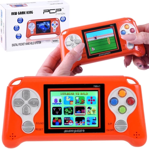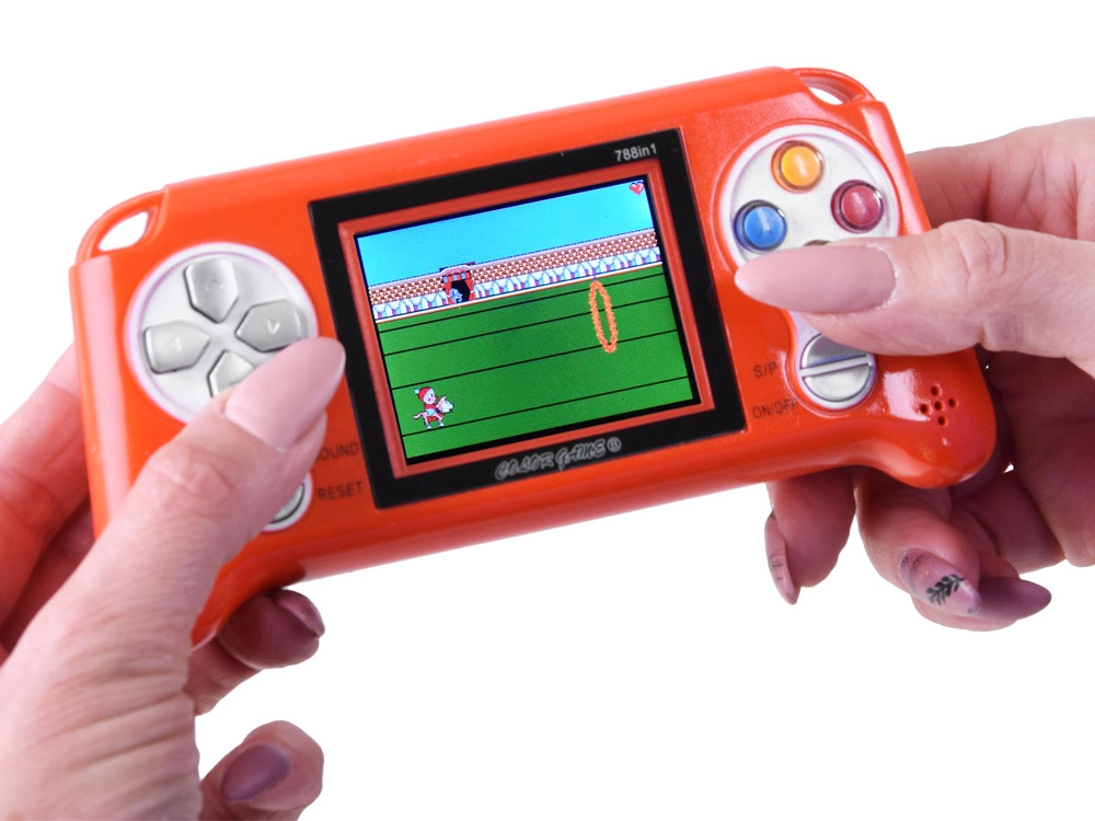Тази джобна игрова конзола ще зарадва любителите на ретро и аркадни заглавия. Предлага внимателно подбран микс от игри: логически, спортни, състезателни, стрелби, бойни, умения и класически платформъри. Яркият LCD дисплей осигурява четима картина и живи цветове, а ергономично разположените бутони позволяват удобно и прецизно управление.