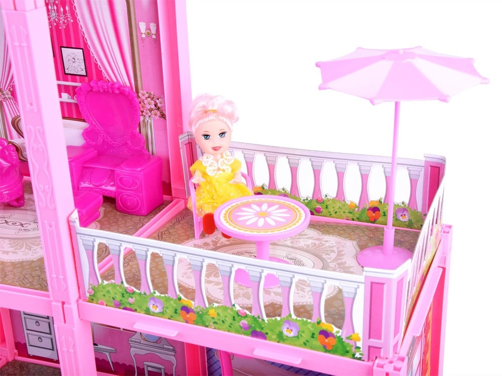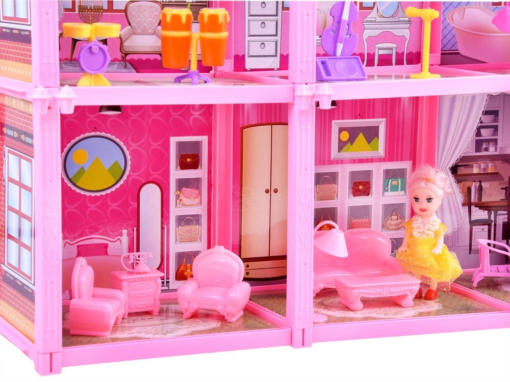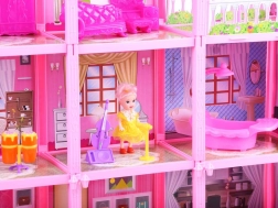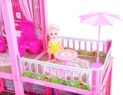 Голямата розова къща за кукли е проектирана с внимание към детайла и високо качество на изработката, което осигурява дълъг живот и безопасност по време на игра. Нейният розов и привлекателен дизайн привлича най-вече малките госпожици, които могат да създадат свой собствен свят, пълен с приключения.