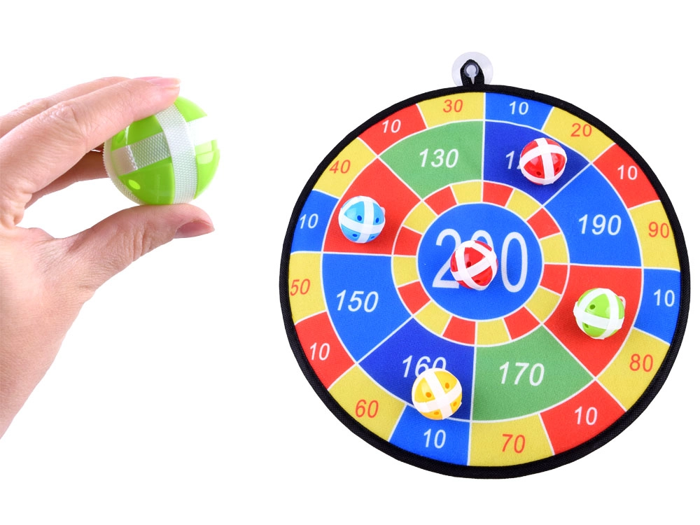 Топчетата със самозалепваща повърхност прилепват здраво към мишената, така че няма нужда от класически стрели. Идеален избор за интериор – щадящ за мебелите и подходящ за малките играчи.