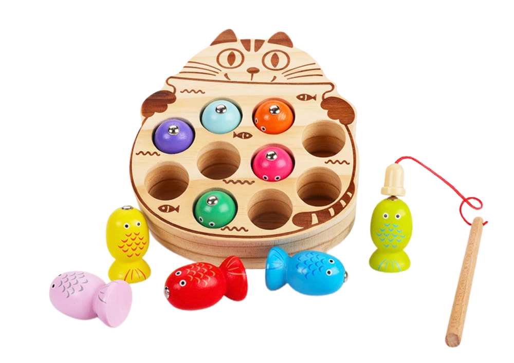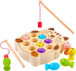 Влезте в света на забавлението с дървената игра за ловене на рибки, която подобрява координацията и фината моторика на децата. Тази игра е идеална за цялото семейство и носи много радост и смях.