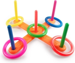Забавна и цветна игра хвърляне на рингове към мишена за деца и възрастни у дома и навън. Развива координация око–ръка, фината моторика и концентрацията. Безопасната пластмаса отговаря на стандартите CE и EN71. Лесен монтаж, лека и издръжлива конструкция, подходящо от 3 години.