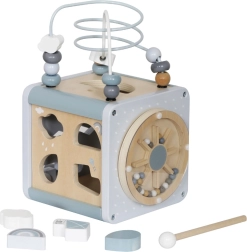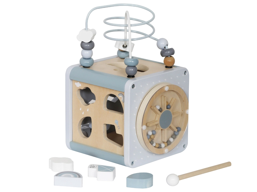 Дървеното мултикубче е вдъхновяваща образователна играчка, създадена по метода на Монтесори, която подпомага развитието на малките деца. Кубчето, изпълнено с интерактивни елементи, помага за развиване на моторните умения, логическото мислене и координацията око-ръка.