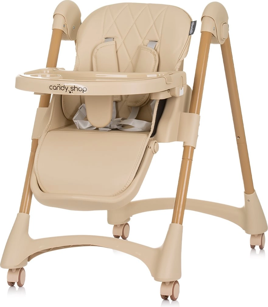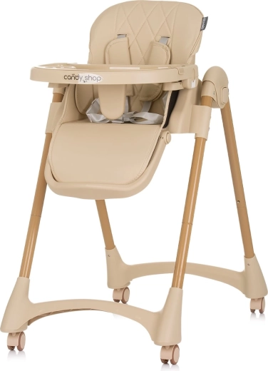 Столчето за хранене CHIPOLINO Candy Shop macadamia е предназначено за самостоятелно седящи деца с тегло до 15 kg. Благодарение на 8-те височини, 3-те позиции на облегалката и 3-те позиции на поставката за крака лесно адаптирате седенето към растежа на детето и височината на масата. Широката, меко подплатена седалка и 5-точковият предпазен колан с раменни подложки осигуряват комфорт и максимална безопасност.