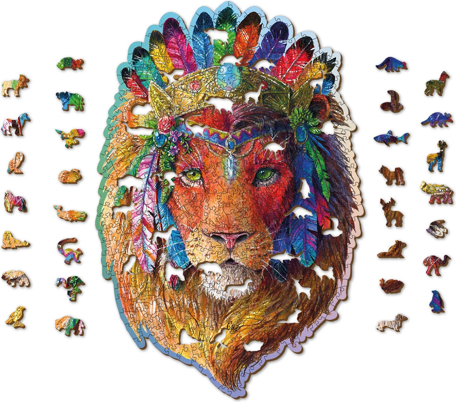 Влезте в света на предизвикателствата и релакса с премиум дървения пъзел WOODEN CITY Мистичен лъв с 505 елемента. Прецизната лазерна изработка подчертава детайлите на мотива и специалните форми на елементите, които могат самостоятелно да стоят като малки фигурки. Двустранното изпълнение 2в1 предлага двойна доза забавление – подреждайте по изображението или се оставете да ви водят самите форми и моделът на обратната страна.