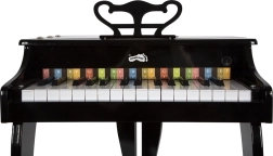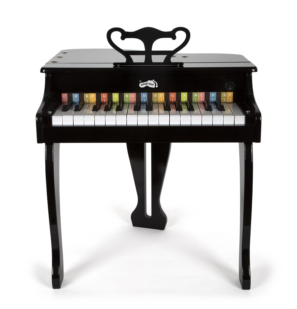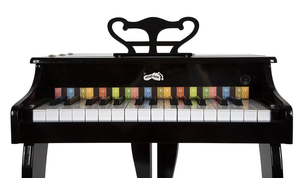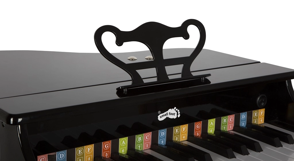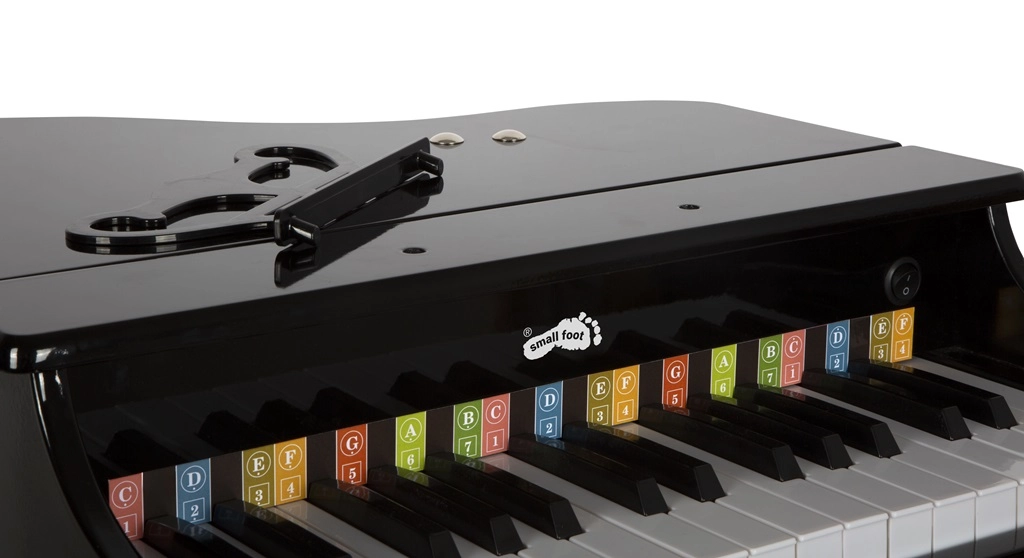 Елегантното детско пиано роял SMALL FOOT от качествено дърво носи на децата радост от музиката. Има луксозен дизайн, отлично качество на звука и отваряем капак като при истински роял. В комплекта са включени столче, поставка за ноти и песнопойка с цветно отбелязани ноти и клавиши за лесно обучение. Захранва се с 4× AA батерии (не са включени).