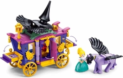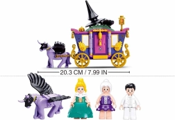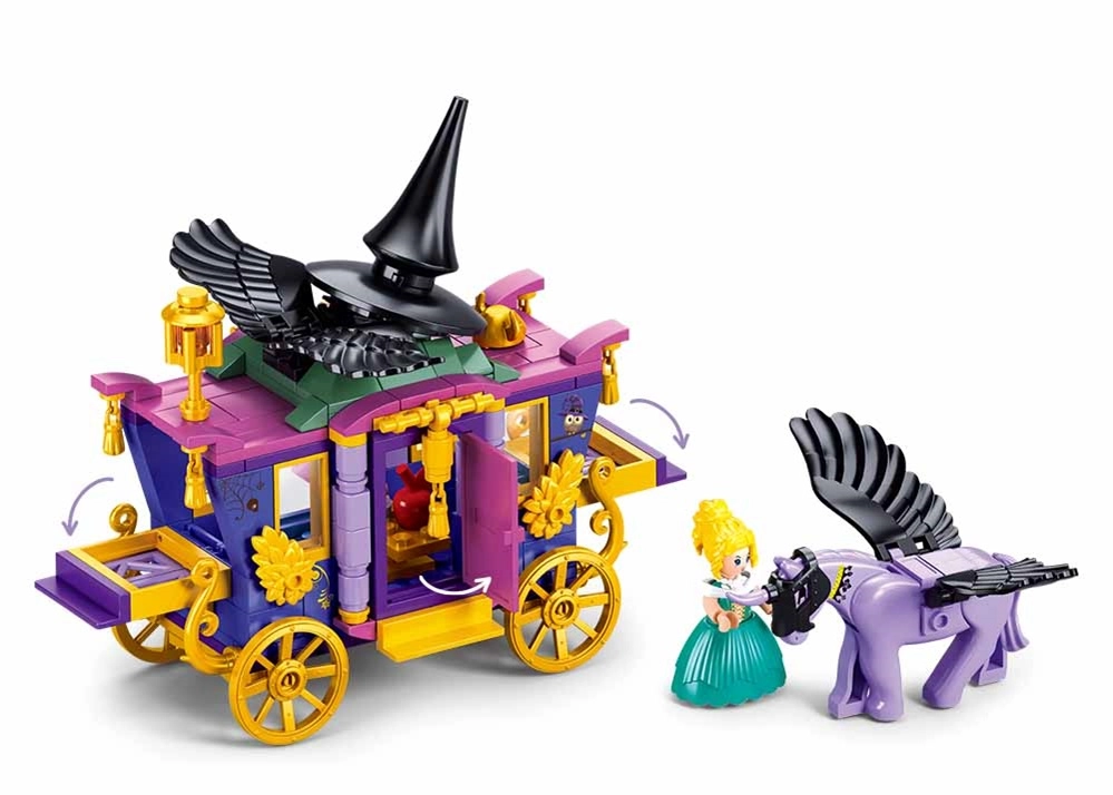 Сглобете изящна каляска с множество детайли и поемете на приказно пътешествие, теглено от лилав еднорог. Идеално за творчески сценарии и ролеви игри.