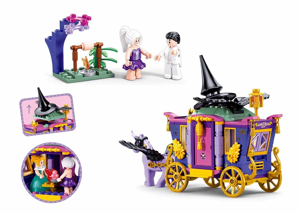 Създайте приказна история с очарователна каляска, теглена от лилав еднорог, и тръгнете на приключенско пътешествие. Комплектът от серията Sluban Girls Dream предлага пъстри цветове, забавни детайли и иновативни минифигурки с подвижни части за още по-реалистична игра.