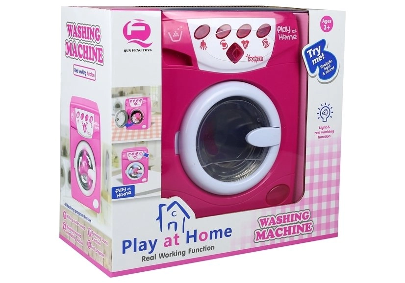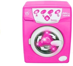 Розовата детска пералня за игра на домакинство предлага реалистично пране с програми за миене, изплакване и центрофугиране. Има светлинни и звукови ефекти, отваряща се вратичка и удобно управление, така че децата от 3 години нагоре да се радват на креативна и образователна ролева игра. Включени са захранване 3× AA и подаръчна опаковка.