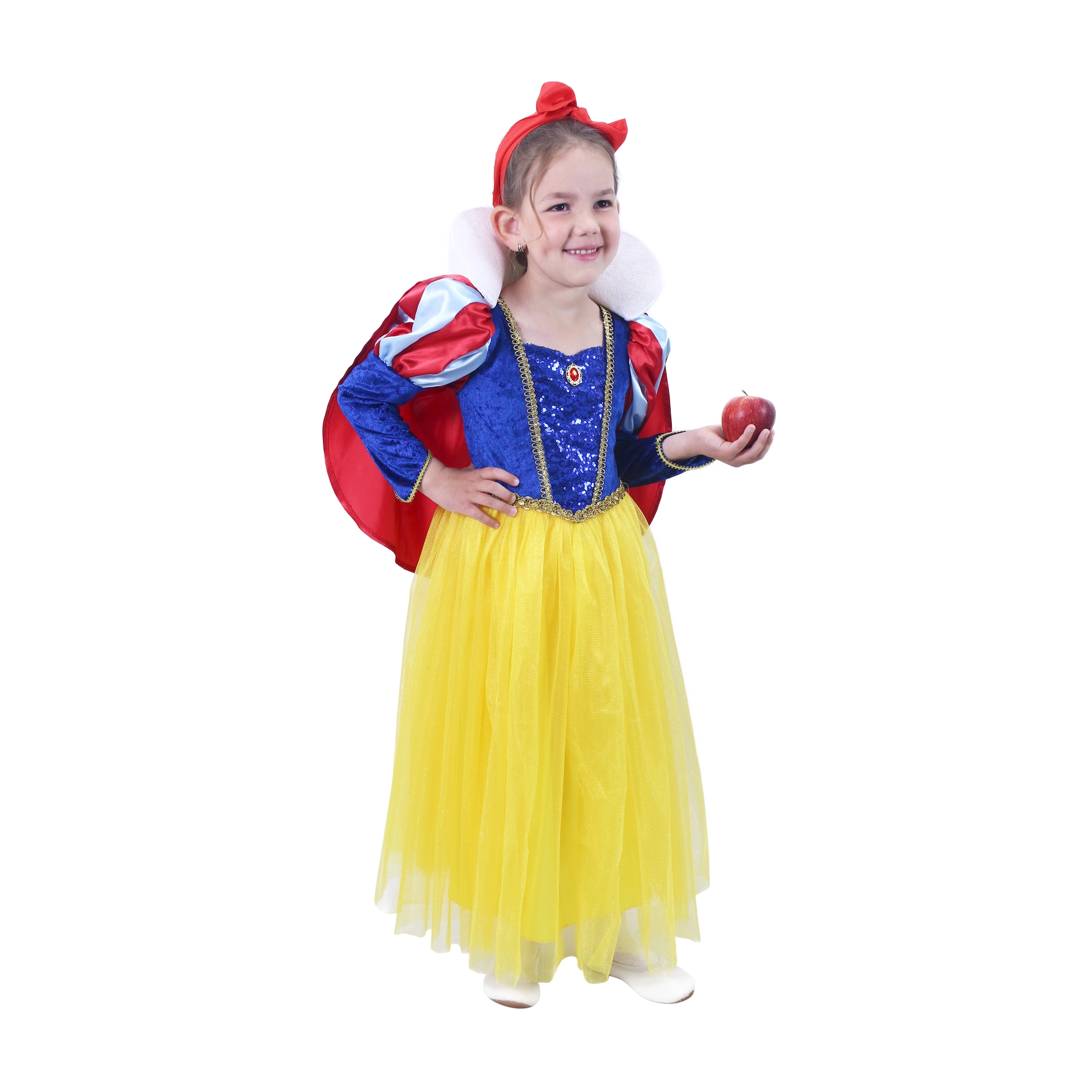 Синият корсет със златна украса, жълтата пола и емблематичните червени акценти създават впечатление за истинска Снежанка. Идеален за карнавал и игра у дома.