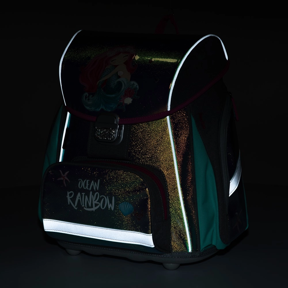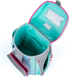 Вътрешното пространство е достатъчно обемно, за да побере всички необходими принадлежности за първи и втори клас. Налице са и предпазна катарама и светлоотразителни елементи за по-добра видимост по пътя към училище и обратно.