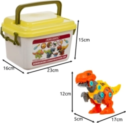 Комплектът включва реалистични подвижни части, като крайници и глави, което позволява на децата да се забавляват, като управляват движенията на динозаврите. Леката и лесна за използване дрелка гарантира, че децата могат лесно да сглобяват частите без риск от повреда или прекалено затягане. Комплектът подпомага развитието на фината моторика и логическото мислене.