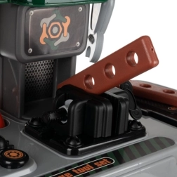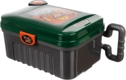 - Комплектът включва различни инструменти, включително ключ, чук и трион, които имитират истински пособия.