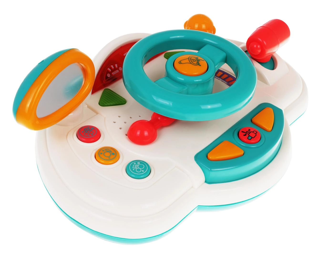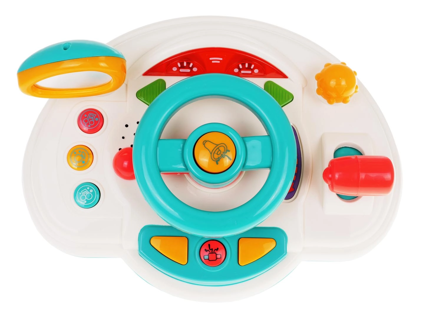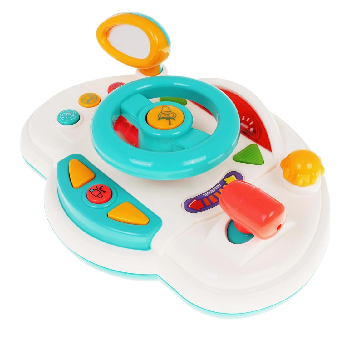 Открийте игривото шофиране с интерактивното детско “табло”, което наподобява истински автомобил. Децата могат да въртят волана, да използват клаксона, да превключват мигачите и да сменят „скорости“ със скоростния лост. Подсветените елементи и мелодиите задържат вниманието и подпомагат сетивното развитие.